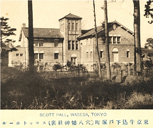 1918年にアトランタで開かれた米国北部バプテスト総会で報告された早稲田奉仕園の事業に強く賛同された 、 J.E.スコット夫人(1851-1936)から寄せられた多額の献金により、1921年末に完成、 1922年1月に献堂式(竣工式)が行なわれスコットホールと名付けられました。
