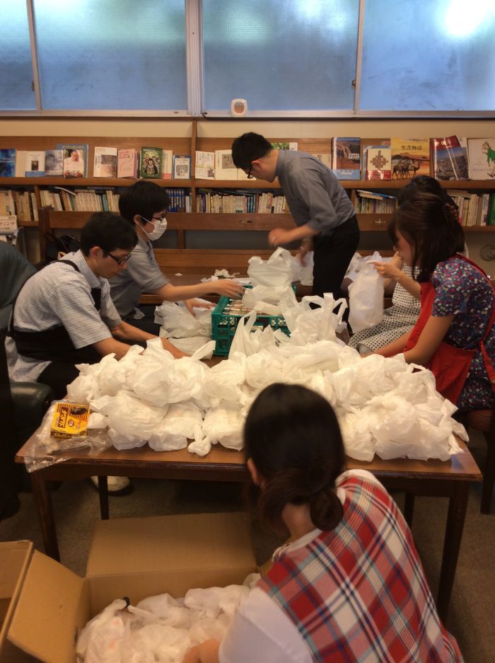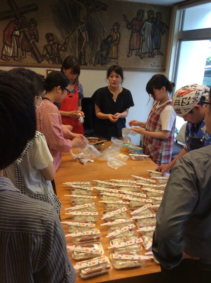 - 給食活動は月2回、日曜日に炊飯(10時)、パッキング(13時半)、夜の配食前のミーティングという順番で行います。